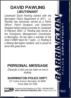 Administration Chief Michael Minardi Email: mminardi@barringtonboro.com Lieutenant David Pawling Email: dpawling@barringtonboro.com